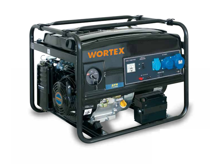Gruppo elettrogeno monofase con motore a scoppio 4 tempi a benzina, fklangiato ad un alternatore a 2 poli monofase. Avviamento con autoavvolgente ed elettrico a batteria. Quadro di comando con 3 prese monofasi e con caricabatteria 12V