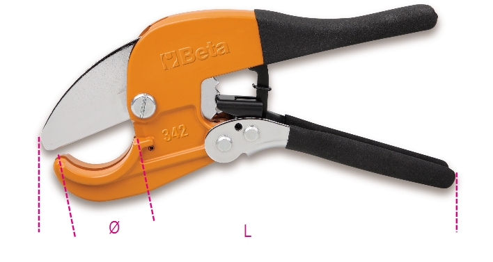 Beta art 342 Cesoia a cricchetto per tubi in materiale plastico • ø 0-42mm = 1'5/8 • lunghezza 200mm • peso 503gr