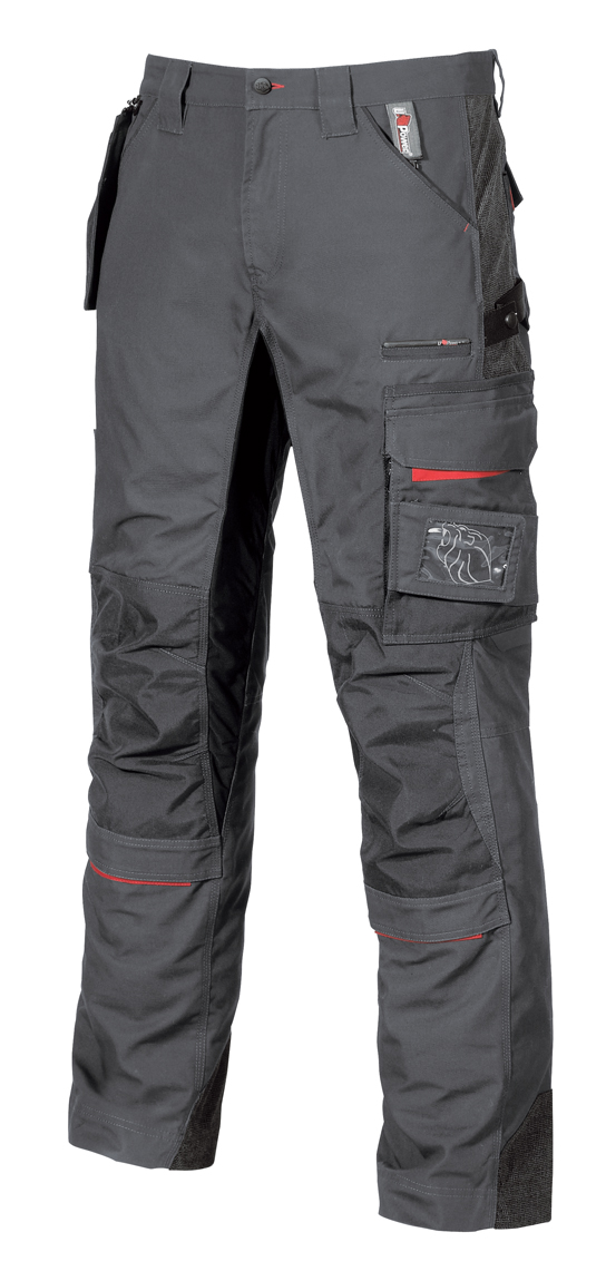 Pantalone dotato di tasca removibile fly pocket, 2 ampie tasche anteriori, tasca invisibile, tasca laterale portautensili, tasca laterale multifunzionale, 2 Free Pocket posteriori in Cordura® con chiusura di sicurezza a velcro, 2 tasche porta ginocchiera in Cordura® con interno elasticizzato; porta martello regolabile; regolazione in vita con elastico per massimo comfort, fettuccia portachiavi brandizzata.