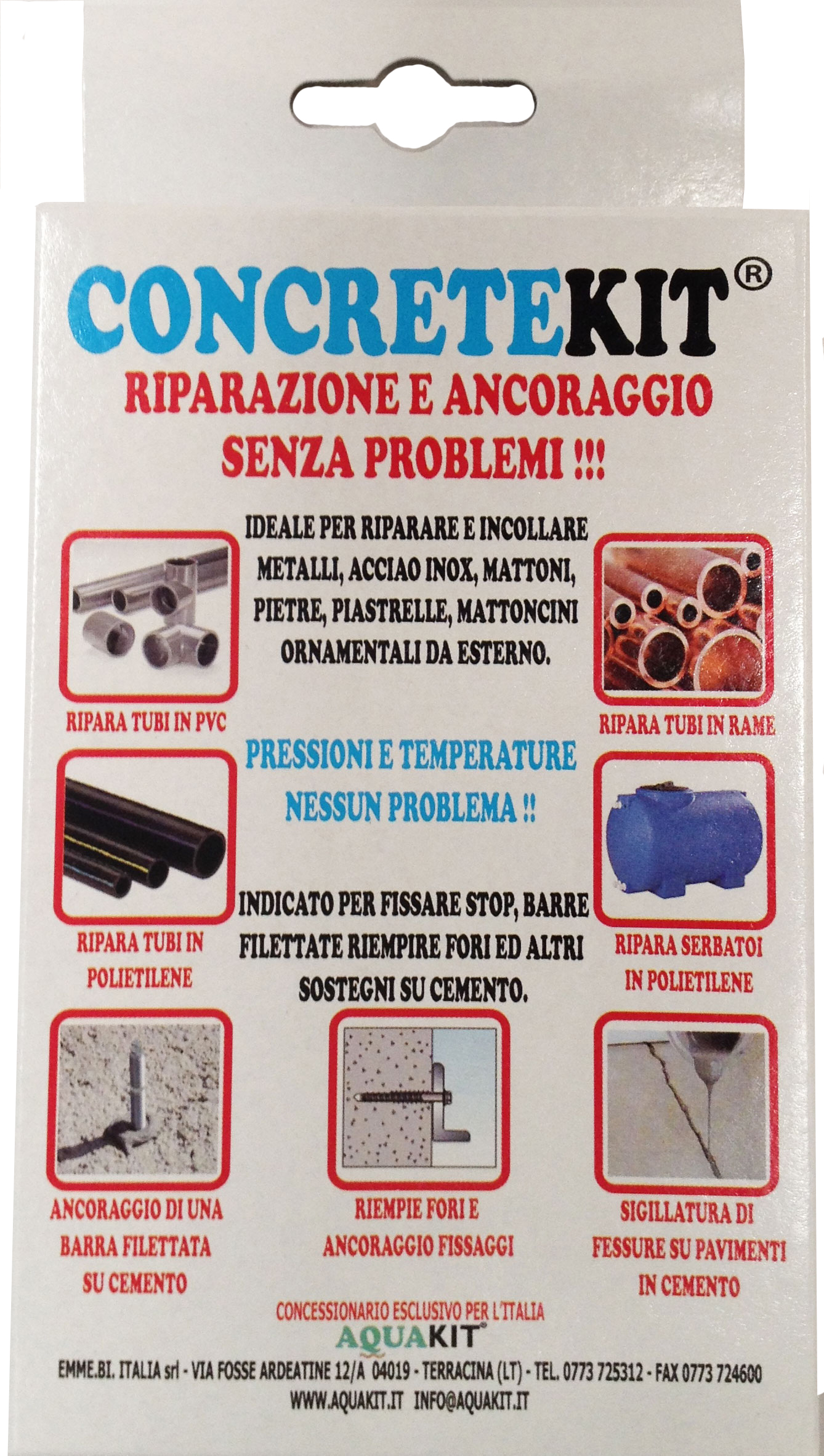 CONCRETEKIT ripara tubi serbatoi in polietilene, tubi in pvc, rame, ancoraggi su cemento