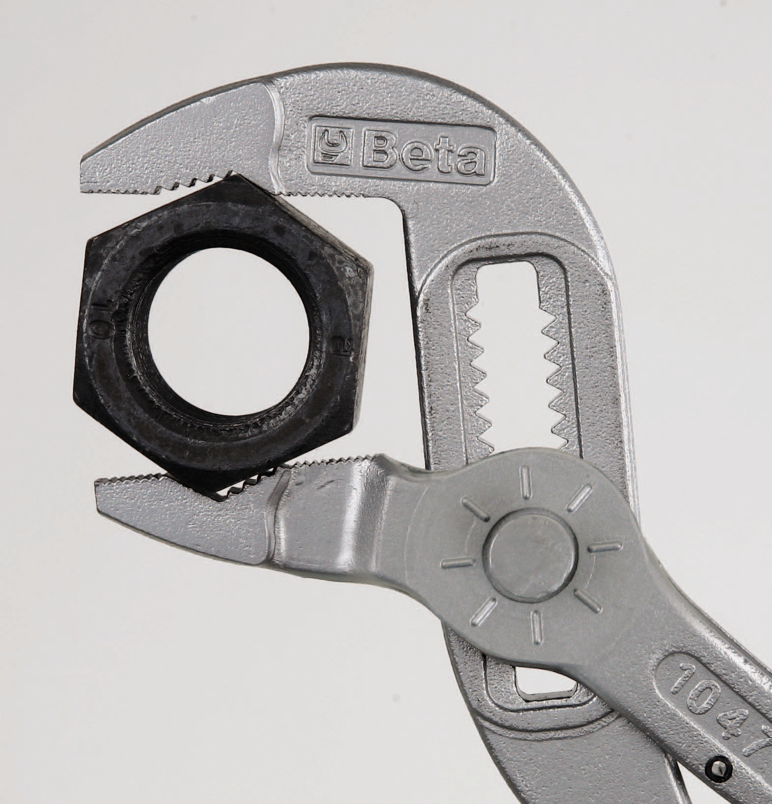 Beta art 1047 Pinza regolabile a pulsante Regolazione rapida e precisa mediante la pressione del pulsante Nessuno spostamento accidentale della regolazione Trattamento termico localizzato sulle ganasce Profilo adatto alla presa di dadi Dentatura autobloccante per tubi - L lunghezza 180mm - A apertura max 30mm - L1 profondità becchi 29mm - S spessore becchi 5,4mm - peso 190gr