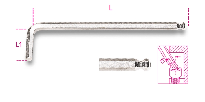 Chiave maschio esagonale piegata con estremità sferica, cromata