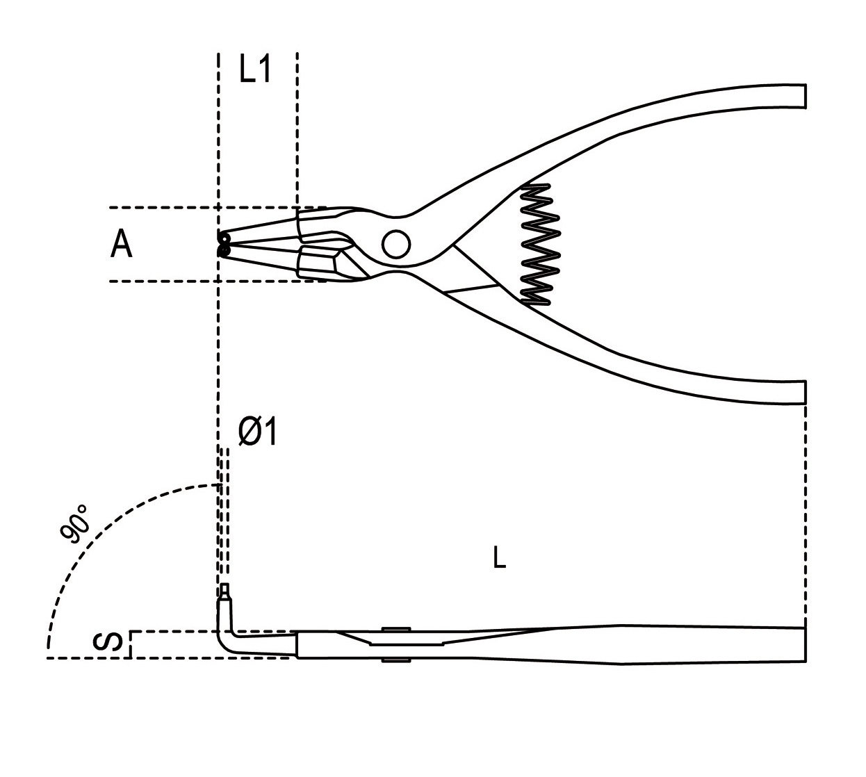 Pinze a becchi piegati a 90° per anelli elastici di sicurezza, per alberi manici ricoperti in PVC