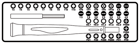 Microgiravite bimateriale con 36 inserti intercambiabili da 4 mm e prolunga magnetica per lavori di precisione