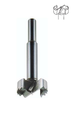Fresa tipo Forstner a due taglienti con punta da centro ed incisori per fori legno