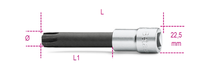 Chiave a bussola maschio per viti con impronta esascanalata con attacco quadro femmina 1/2" cromata - inserti bruniti • UNI 9326
