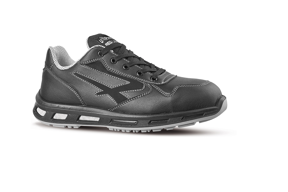 Scarpe antinfortunistiche totalmente "Metal free", basse, leggere e comode u power della linea Red Lion, con tomaia New safety dry, idrorepellente, traspiranti, soffietto in nylon imbottito, puntale composite, antiperforazione, antiscivolo e suola PU/PU infinergy, S3 CI SRC ESD