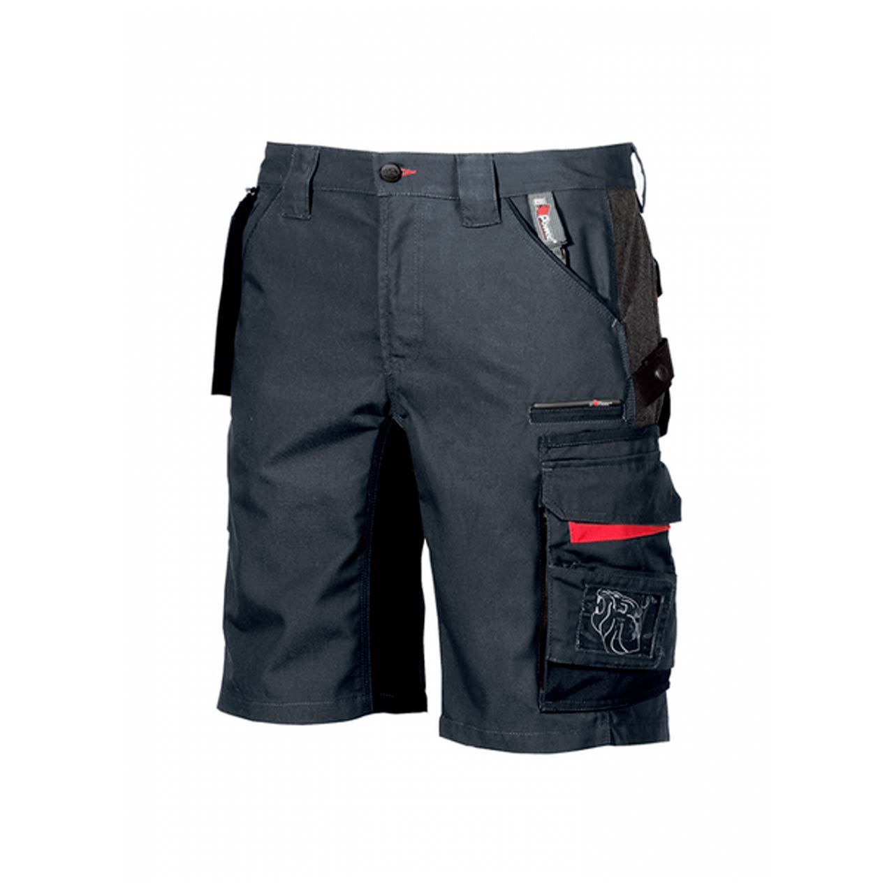Bermuda da lavoro dotato di tasca removibile fly pocket, 2 ampie tasche anteriori, tasca invisibile, tasca laterale portautensili, tasca laterale multifunzionale, 2 Free Pocket posteriori in Cordura® con chiusura di sicurezza a velcro; porta martello regolabile; fettuccia portachiavi brandizzata. Inserti stretch ad alta vestibilità ed ergonomici, inserti in tessuto Cordura® e antiabrasivo nelle zone di massimo contatto, inserti reflex. Supporti di rinforzo per velcri, triple cuciture. Bottone antigraffio, zip YKK. Si abbina al Gilet First. Bermuda per Carpentieri, Elettricisti, Idraulici, Installatori, Meccanici
