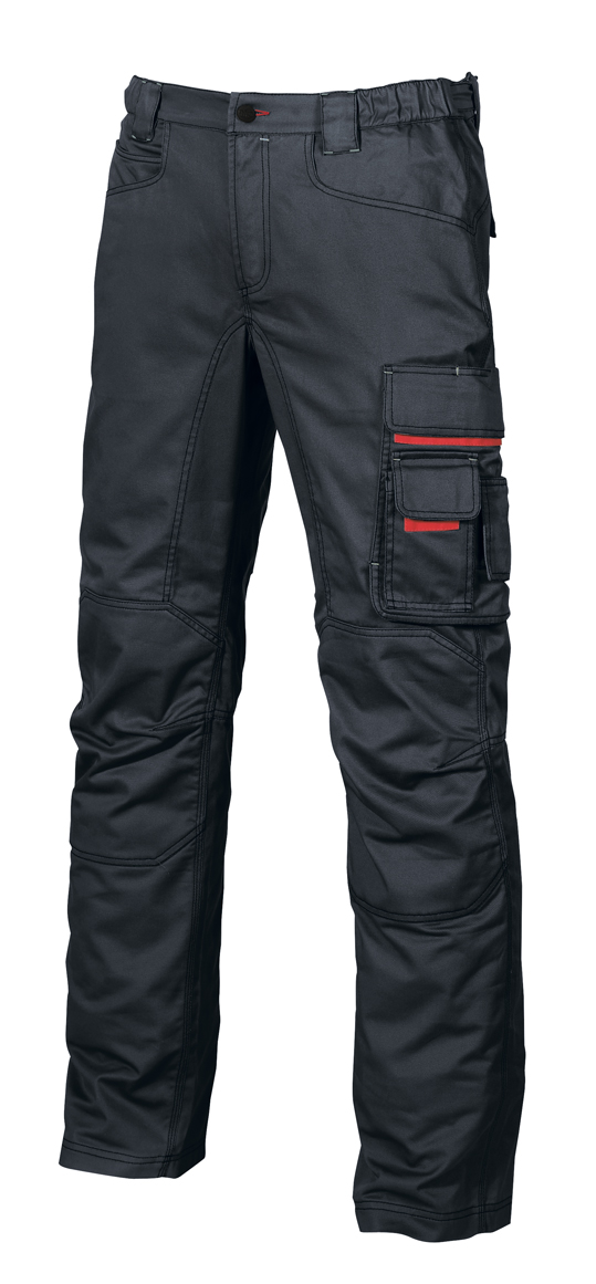 Pantalone da lavoro dotato di 2 ampie tasche anteriori, tasca laterale portautensili, tasca laterale multifunzionale portabadge, 2 tasche posteriori con chiusura di sicurezza a velcro; porta martello regolabile; regolazione in vita con elastico per massimo comfort. Supporti di rinforzo per velcri; triple cuciture; struttura al cavallo rinforzata; morbide toppe di rinforzo sulle ginocchia. Bottone antigraffio. Si abbina alla Giacca Shake e al Gilet Fun. Pantalone per Agricoltori, Autotrasportatori, Carpentieri, Elettricisti, Idraulici, Imprese di pulizia, Installatori, Magazzinieri, Meccanici, Muratori
