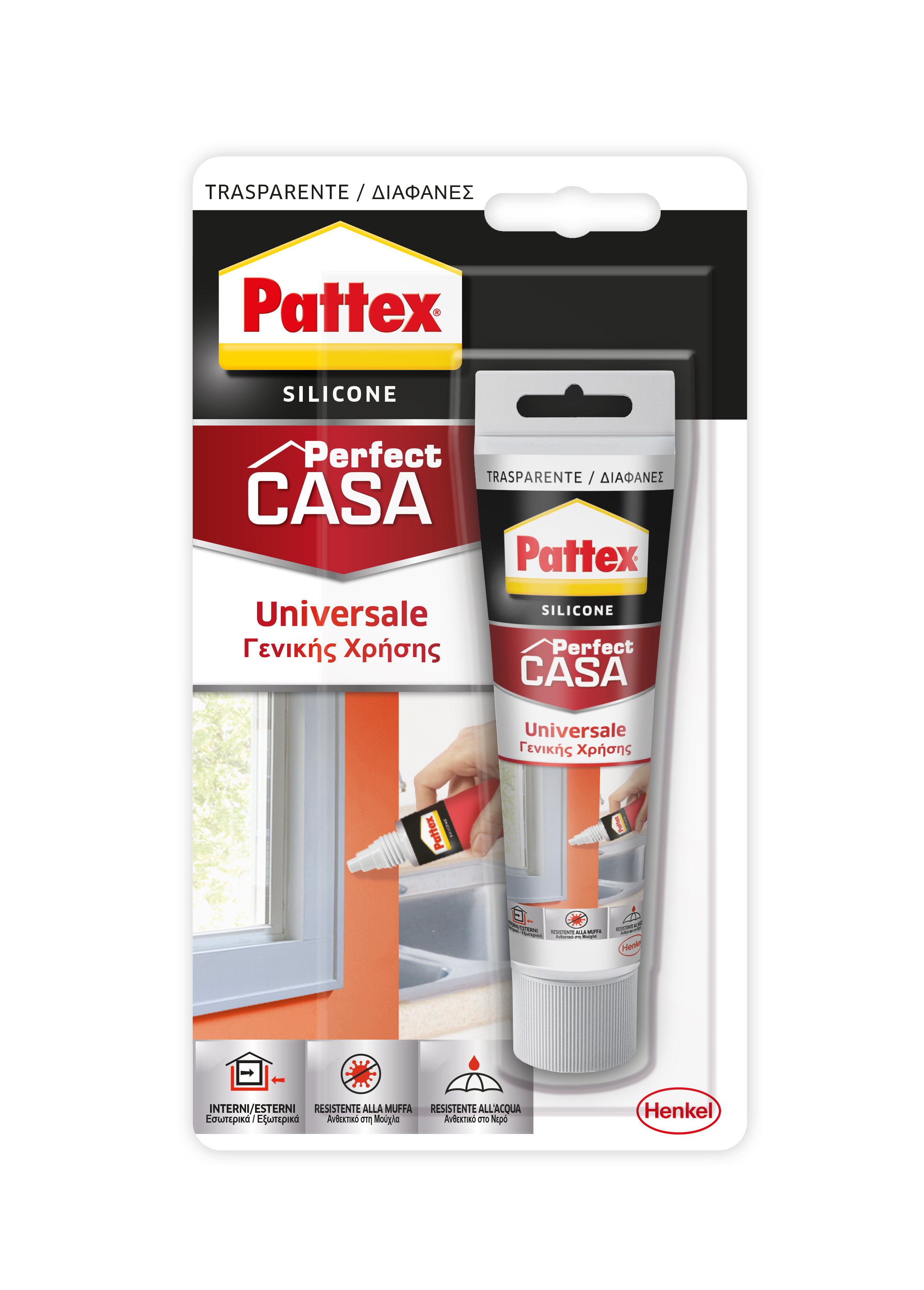 Henkel 1991095 PATTEX Universale Trasparente 50ml Sigillante siliconico acetico a prova di muffa, ideale per sigillature di materiali non porosi (vetro, ceramica, alluminio...), sanitari, guarnizioni metalliche per serramenti, grondaie, etc.