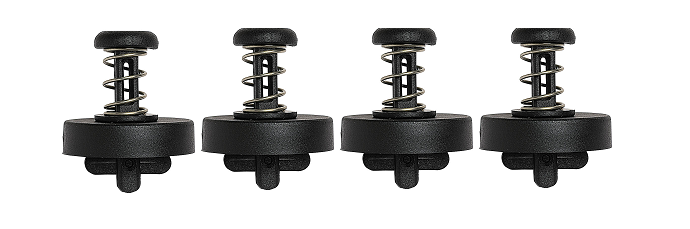Perno in nylon e fibra di vetro che fissa la macchina alle staffe e sostituisce la normale viteria. Veloce da montare, non arrugginisce, dotato di gommino antivibrante in poliuretano, utilizzabile per tutte le staffe in plastica e metallo.