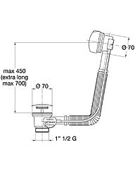 EXTENSA Colonna vasca automatica, con tubo troppo pieno flessibile ed estensibile, senza dadi di serraggio (pezzo unico)